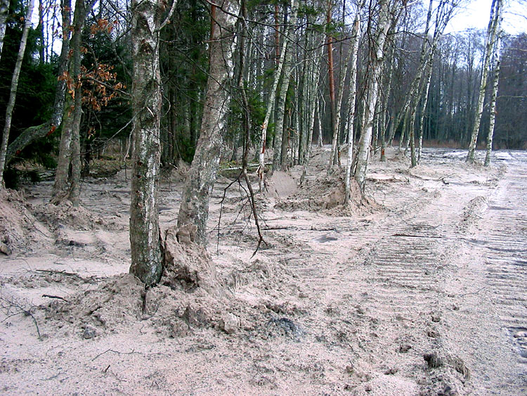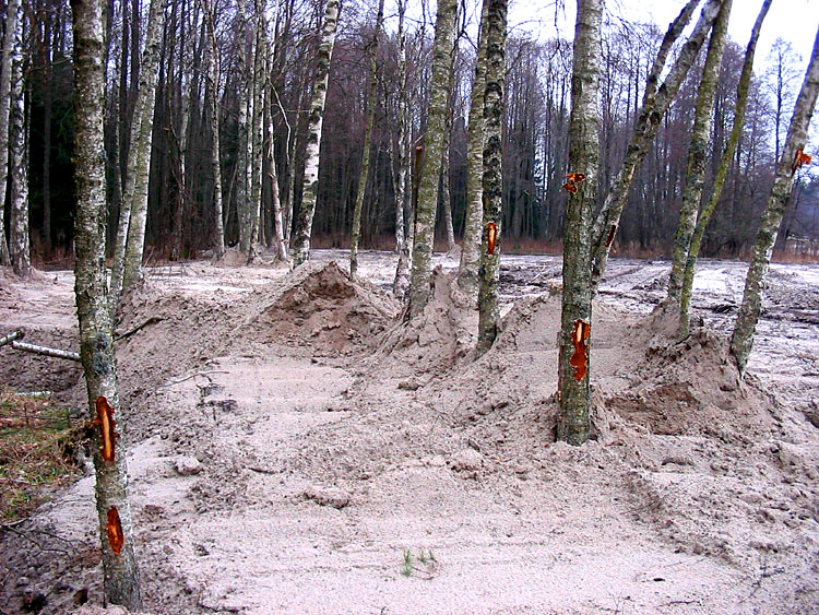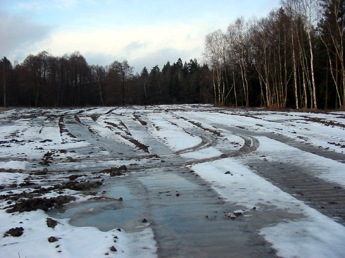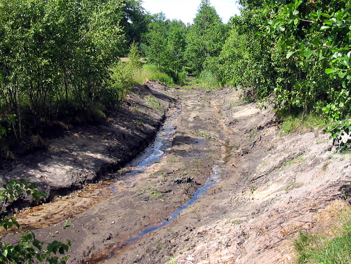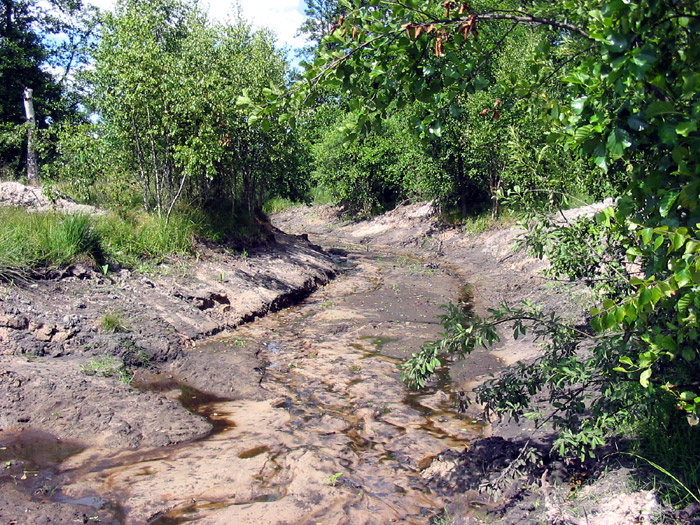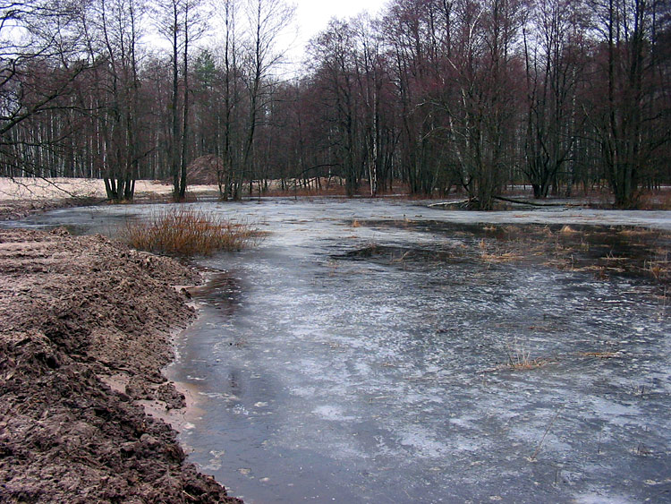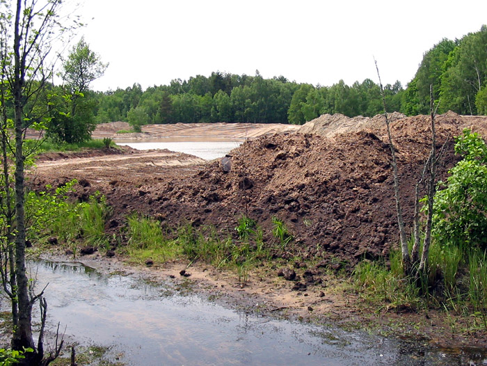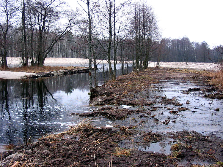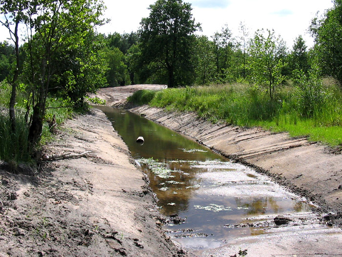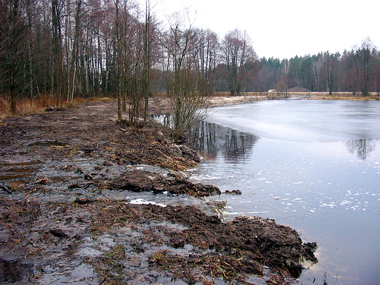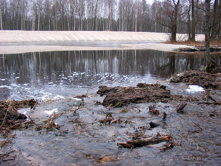 The first environmental violation was flooding of the forest. It is unclear why this was done or if it was a scientifically founded part of the project, but the canal that enters the pond from the north was blocked with an earthen dam. This resulted in blockage of water drainage, significant rising of the groundwater level and flooding of the surrounding alder forest.