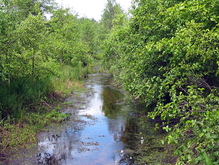 The shots below show the earthen dam blocking the amelioration canal, the flooded alder forest and lowland meadows.