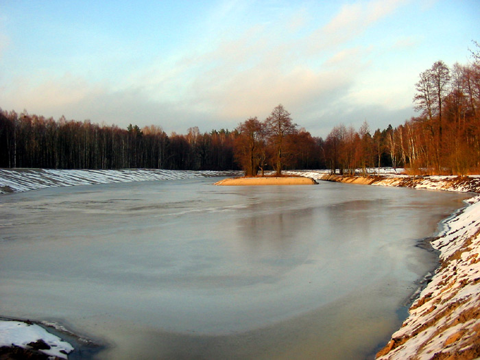 A small island with alders growing on it was preserved in the middle of the pond.