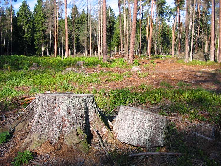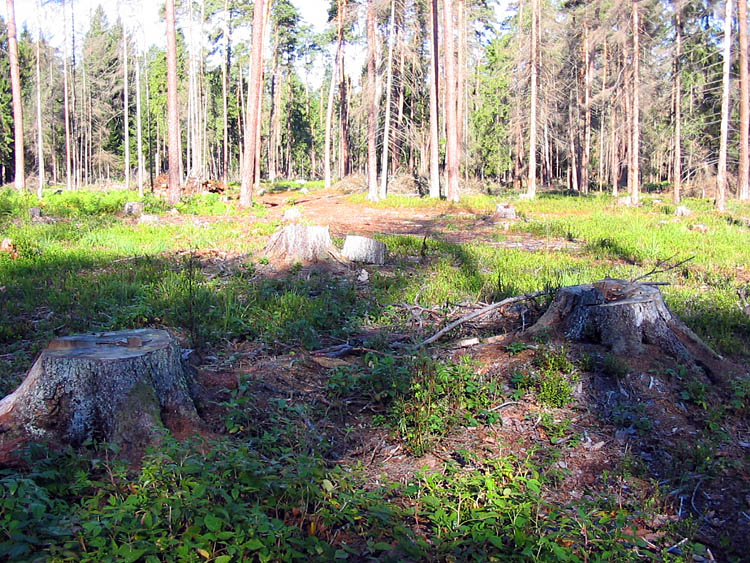 So, that is the shape of the relic forest after cuttings down which conducted in a few reiterations within many years. We see that the ecosystem of the relic primeval forest has been completely destroyed and has been turned to the "stump" landscape of the sparse growth of trees.