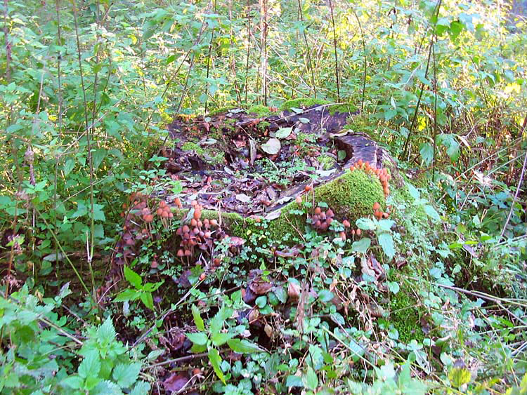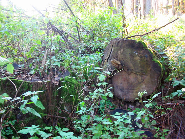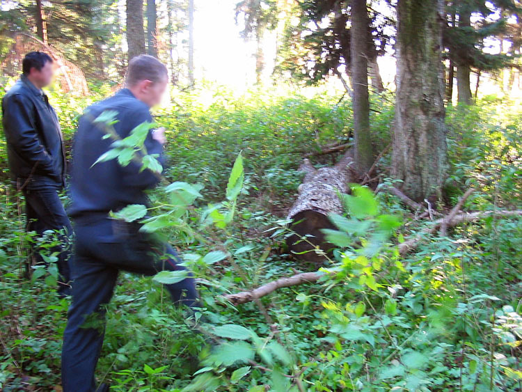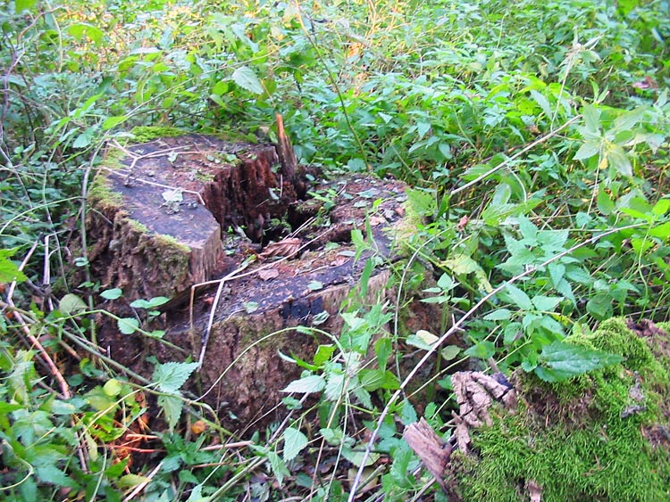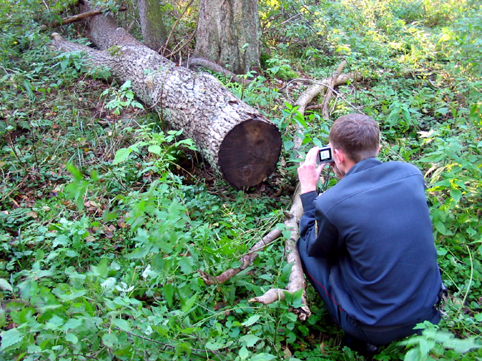 The photos below show stumps, pieces of trunks and wood-cutting residuals of old-age ash trees illegally felled, and the team of investigators in 2007. For comparison the photos of the same stumps and trees shot in 2005 are also given.