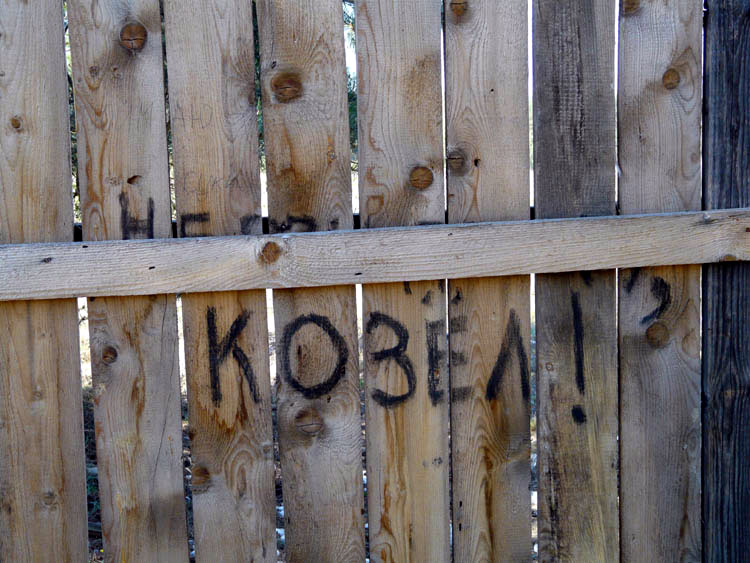 ("Correspondence" on a fence between the national park and the local population; May 03, 2009) |