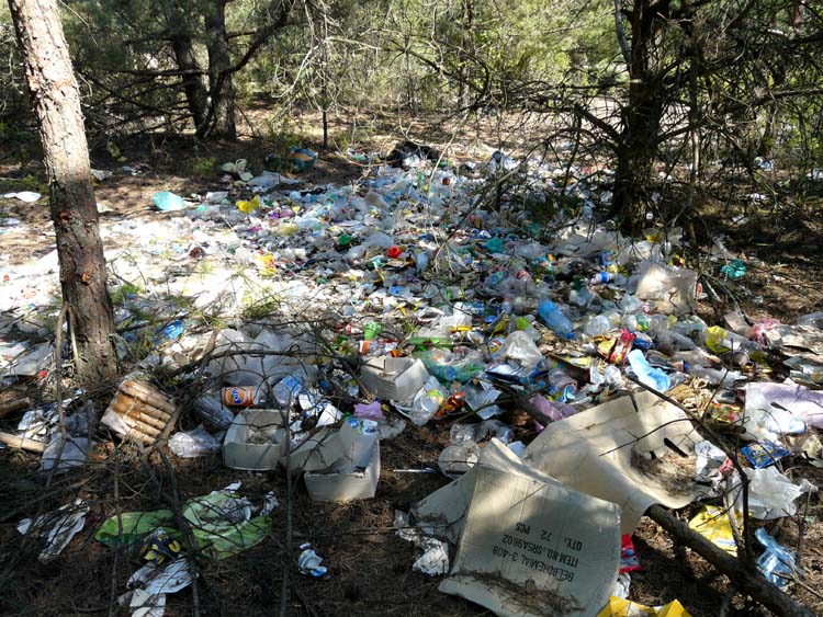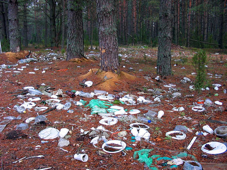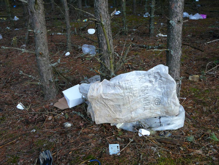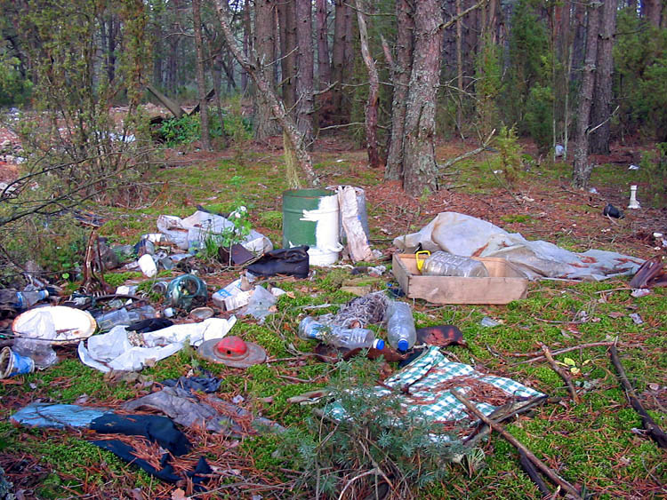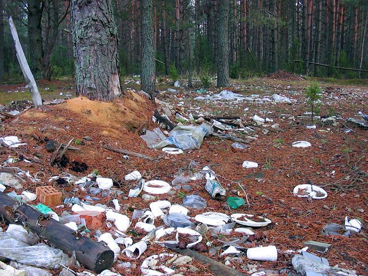 | (Rubbish in the forest surrounding the village of Kamenyuki; March 21, 2008) |