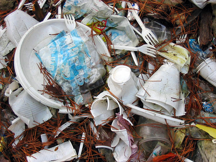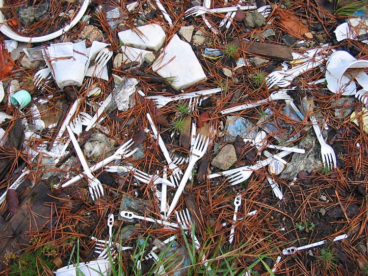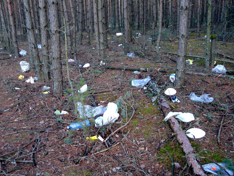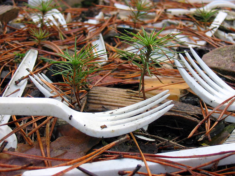 | (Young pine trees together with plastic rubbish; December 04, 2006) |