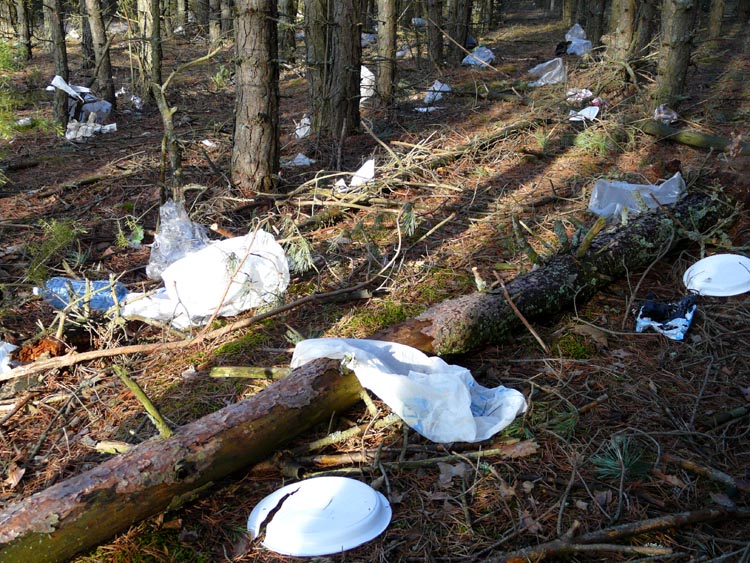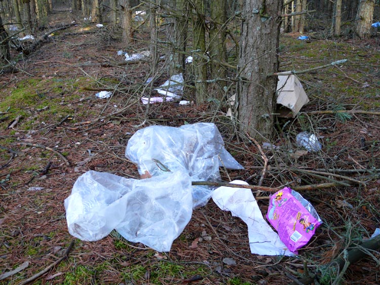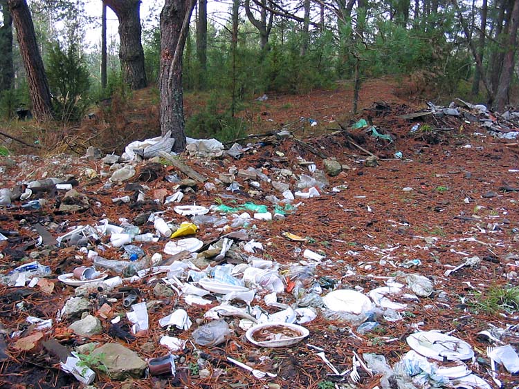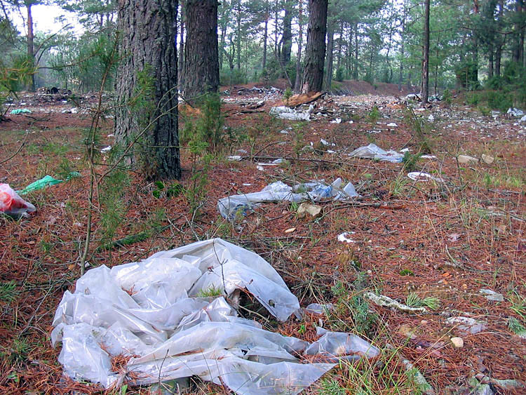 | (Rubbish in the forest moved by wind from the dump area; March 21, 2008) |
