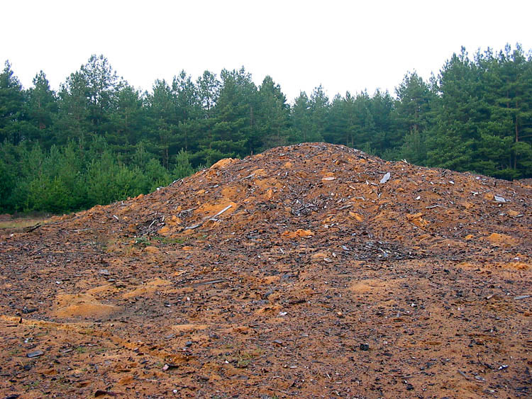 Heaps of sawdust, bark and wastes of wood processing in most cases have also been leveled by bulldozer. Only "hills" which are very big in size have been left in depth of the non-authorized dumping ground.