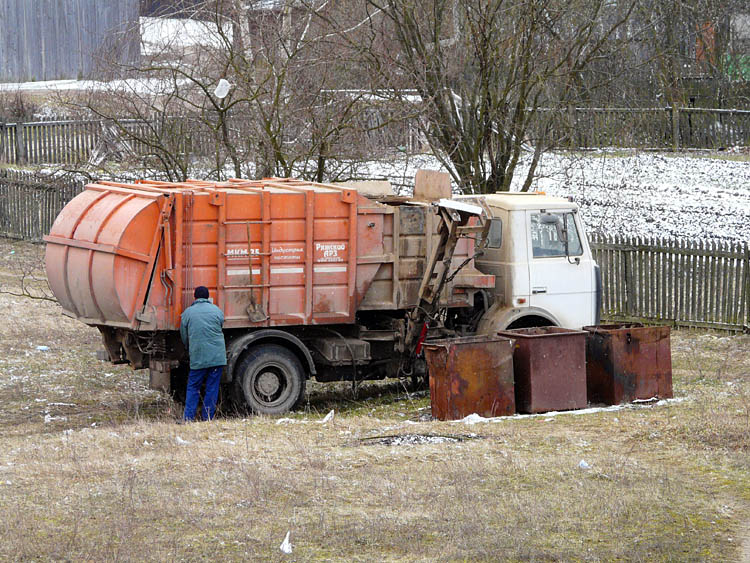 | (A sanitation car takes away rubbish in the village of Kamenyuki; 1 – July 27, 2008; 2 – March 21, 2008) |