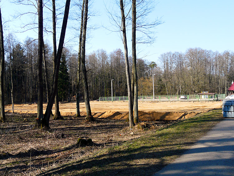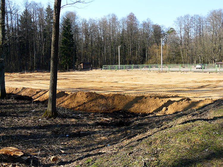 Events, facts, documents and evidences: There is a parking area at the entrance to the administrative and tourist center of the National Park "Belovezhskaya Pushcha". It is situated on the both sides of the road (on the right and on the left). Once it was quite small. In 2002 the first expansion of the parking area took place. The expansion required cutting down a patch of the old alder forest on the right side of the road.