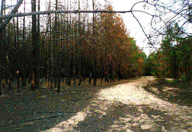Events, facts, documents and evidences: In August 2003 one more fire broke out in Belovezhskaya Pushcha. An area of young forest covering approximately 0.8 hectares burned down. The young forest grew in quarter 987, within the Regulated Recreational Use Area. The applied method to extinguish the fire was characterized by unsatisfactory measures. In the end the damage made to the forest was much bigger than would have been necessary if the fire would have been extinguished in an appropriate manner.