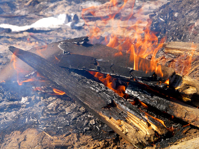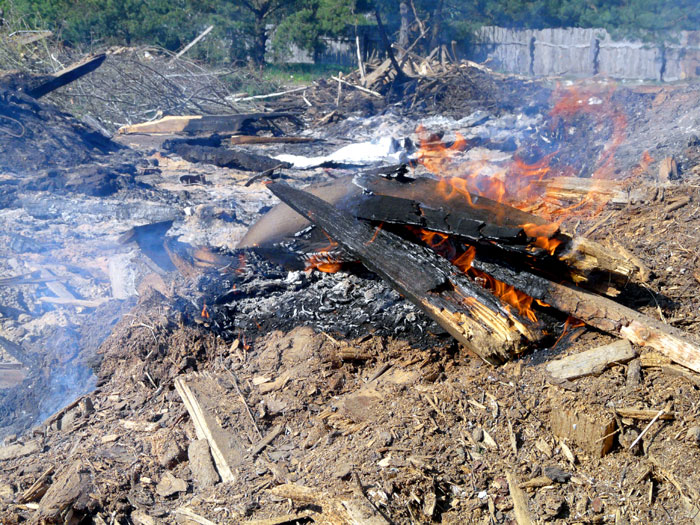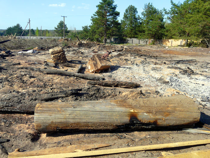 Thick wood logs which could not be burned to the ground and remain to be laying black are shown below.