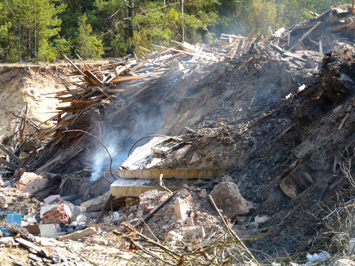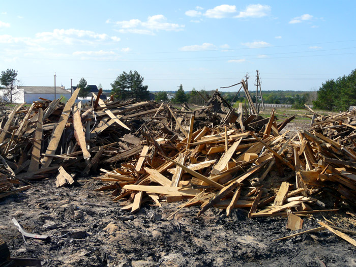 Much lumber waste, rotten wood and plank timber off-cuts have already been accumulated on the dump by late April of 2008. After this a decision was made to burn out them in order to clean up the dump area and to cover up tracks of economic chaos. And that was soon done. Much wood of partially good and partially rotten quality, planks and plank timber off-cuts of quite high quality which could be used as fire wood for heating including offered for sale and gaining some income in this way were available among these wood waste . You can see the chronicle of these events from photos below.