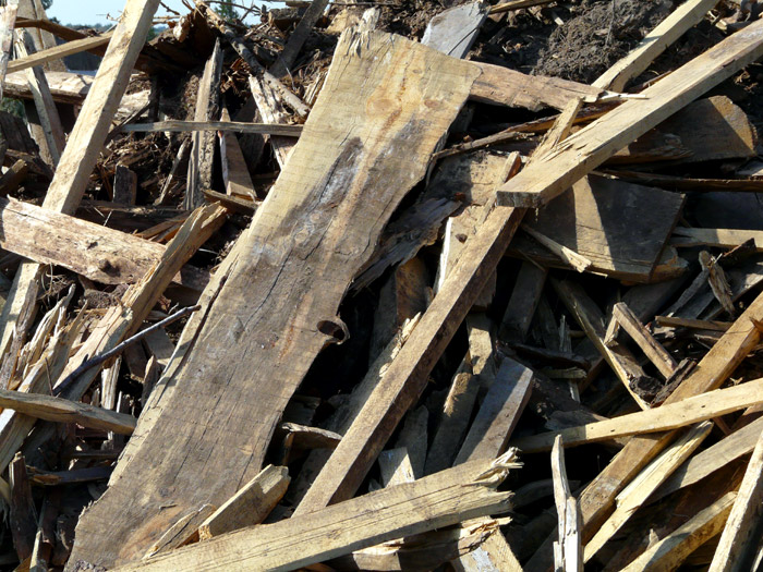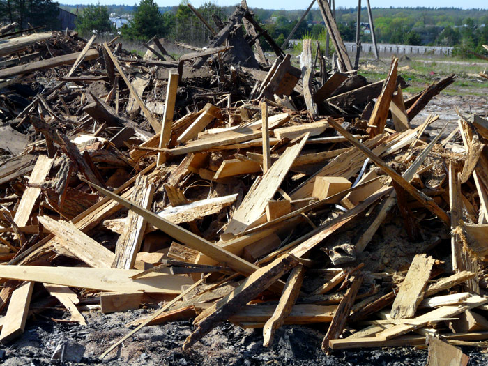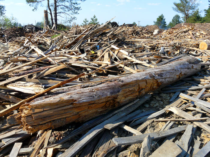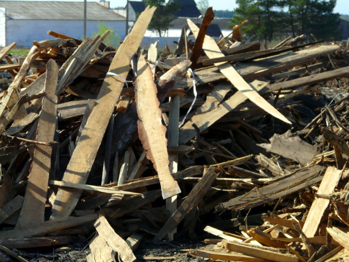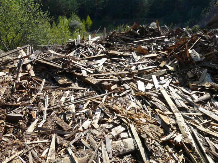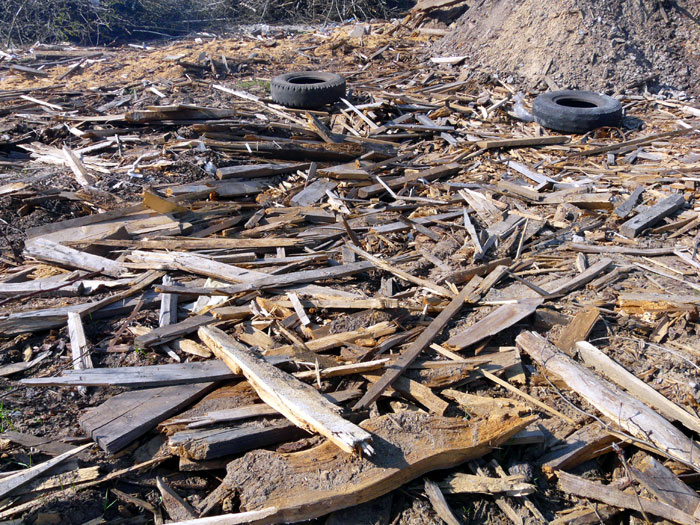 Heaps of plank timber off-cuts carried away from the wood processing plant are shown below. They are not yet burned.