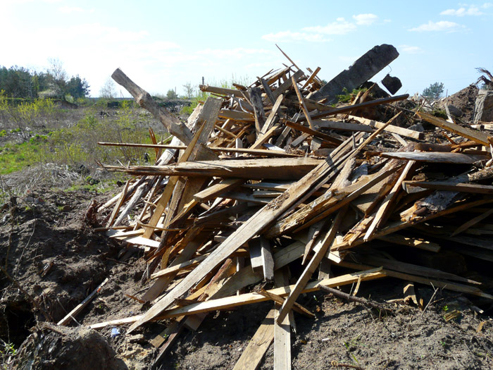 These photos show plots of the dump where rotten wood and timber plank off-cuts were earlier carried out. The wood is still lying on the ground of being out to be covered up with earth or to be burned burn.