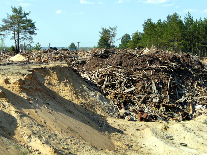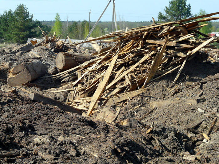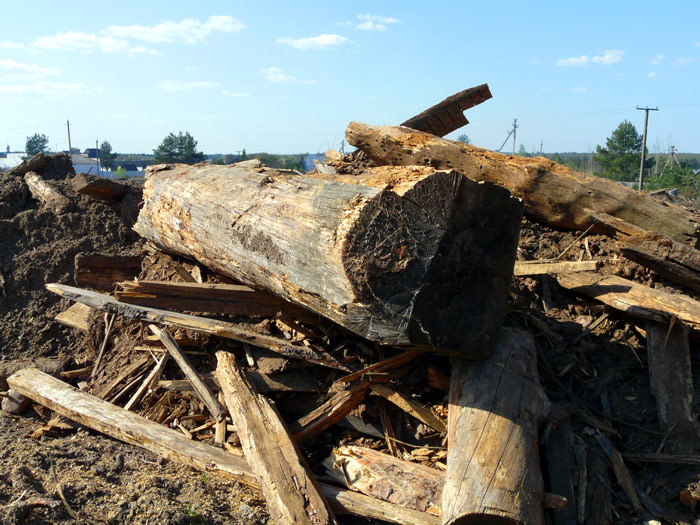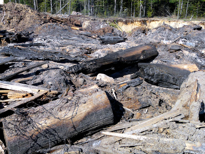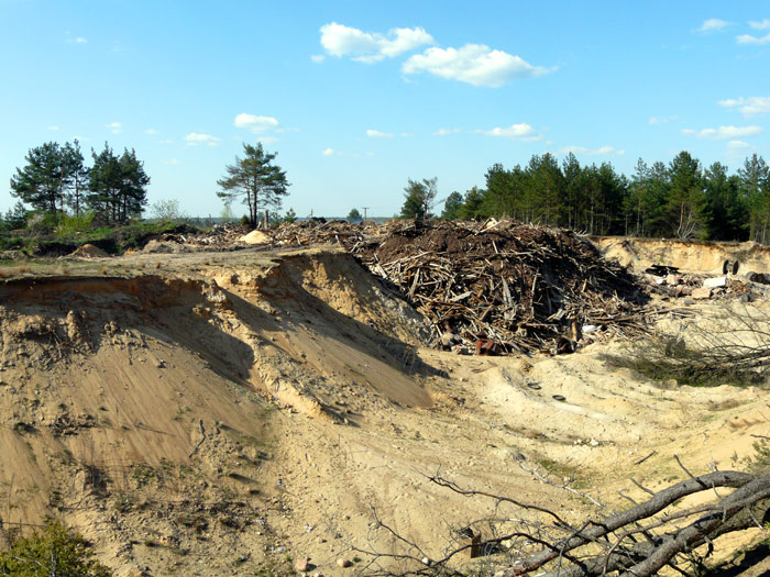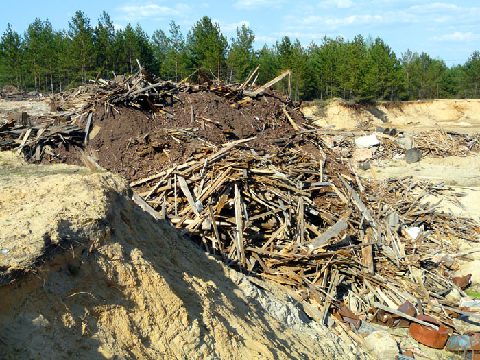 These photos show that part of the dump where a big amount of saw-timber and timber wastes was carried out is was dug by bulldozers. There is a lot of wood underground which, if to be set on the fire, represents a danger to be burning as very long as peat bogs burn.