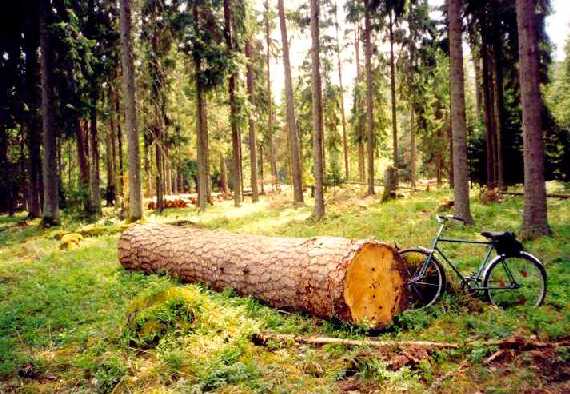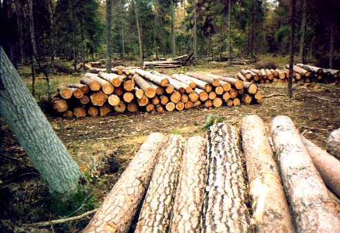 These pictures show freshly cut down Pines together with thick logs of Spruce.