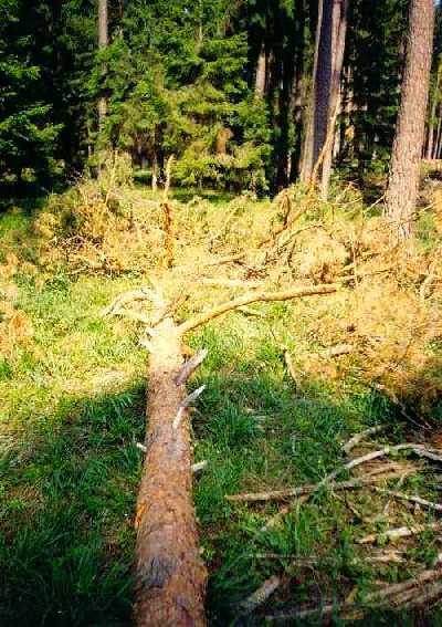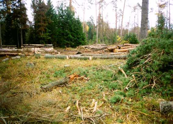 In autumn 2002 the management ordered to cut down numerous Pines of old-age in the patches of forest which had been struck by the hurricane before. In the winter following it has been decided that the felling of old Pines has been expanded into the depth of the forest, thus a larger area than the patches damaged by the storm.