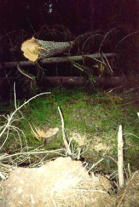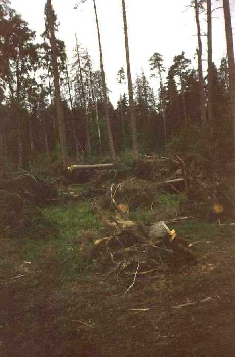 These pictures were made in July 2002 in compartment 742 on the border of the forest area which had been completely blown down by the hurricane. The pictures were shot in the evening, with cloudy weather and at considerable distance which explains the poor quality of the pictures.