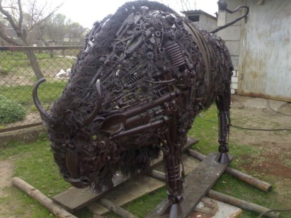 In 2011, a resident of the village of Ozery made for 3 months a bison in full size from parts of Soviet cars.