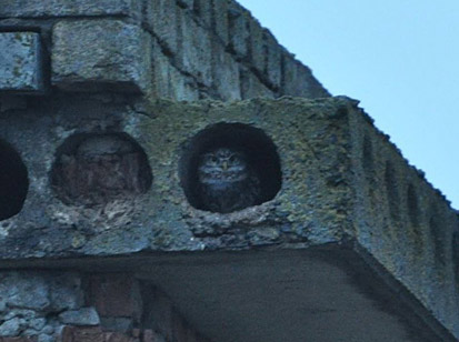 It has long been known that a little owl lives on the farm in the neighboring village. This time it was decided to check this place out and make sure that the owls are OK. A group has been specially outfitted and it confirmed the presence of a couple inhabiting the slabs in a transformer station.