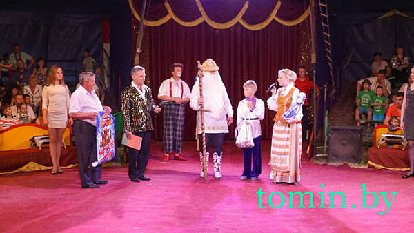 The guest from Pushcha arrived with goodies. The Santa Claus's helper handed a traditional Belarusian doll to the circus artists as amulet and talisman. Puschik presented "Tree of Health", which he made with their own hands.