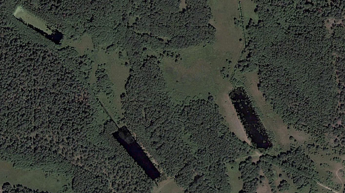The ponds "Plyanta" are near to the River of Pravaya Lesnaya. They are situated in the Recreational Use Zone. The aqua park can be built covering these ponds (this is the satellite picture shot from the space and placed in the system Maps-Google) |