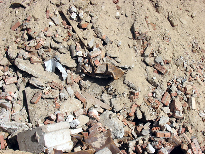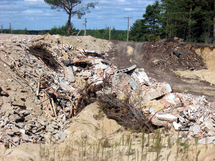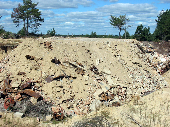 dumper trucks took out building remnants, which consisted of many materials like bricks and blocks still worthy for re-use, to a dump area. A bulldozer covered all of these by sand. And a big hill-embankment which buried the remnants of the house of culture is now in the place of the sand-pit.