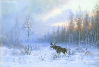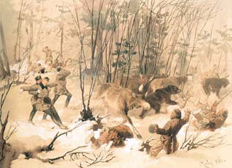 | М. Зичи. Лоси и медведь, прорывающиеся сквозь цепь |