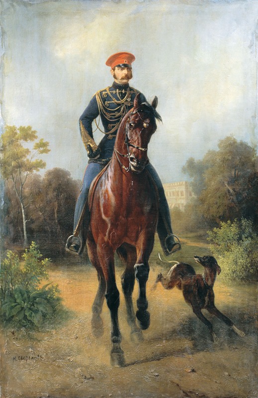 | Николай Сверчков. Портрет Александра II на коне. Середина XIX века |