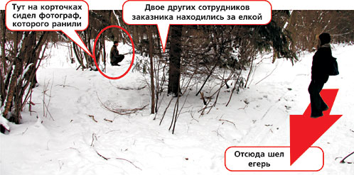 - Мы тут с братом были неподалеку, ремонтировали вышку для наблюдения за животными, - рассказывает Александр Иванов. - Примерно в 16.15 услышали выстрел. Подумали, браконьер. Позвонили директору, он приехал с Николаем. Вместе прошли в лес, нашли ЛуАЗ. Только выпал снег, луна светила, и было видно, что один человек пошел вот по этой дорожке к подкормочной площадке для кабанов. Мы прошли, стали вот тут (показывает на елку и кусты за ней, в нескольких метрах от дороги. - Прим. ред.). Габец был легко одет, пошел в машину греться. А мы прождали с час, видим, идет человек. Я с братом вот тут стоял, нас с дороги не было видно, а Коля на фоне пригорка на корточках сидел. Я идущему «Лесная охрана!» кричу. Он прошел еще пару шагов, повернулся и выстрелил. Я кричу: «Ты что стреляешь!». А он мне: «Саша, это ты?». Смотрю - а это егерь, Ярута. Мне казалось сначала, что он стрелял мимо. И тут мы услышали, что Николай говорит: «Я ранен, я ранен». Подумал, что этот егерь всех нас сейчас перестреляет. Выхватил ружье, разрядил, разобрал, бросил в сторону.
