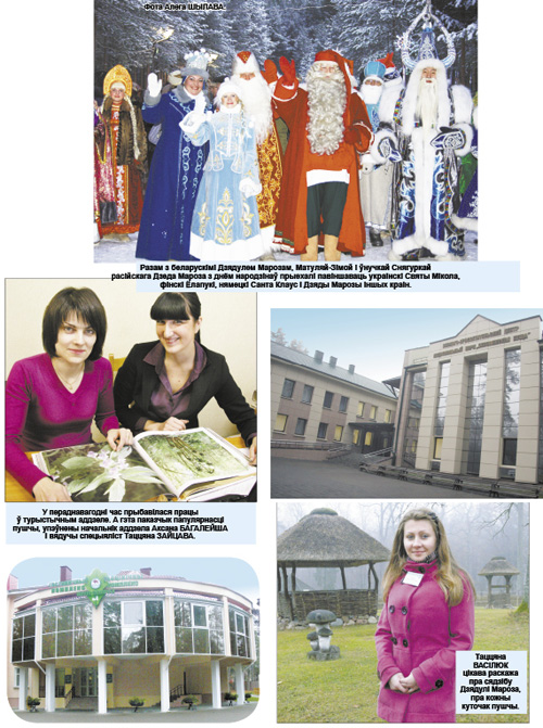 — Не так даўно прыязджалі эксперты, а цяпер яны час ад часу па тэлефоне ўдакладняюць асобныя звесткі, задаюць пытанні, сувязь падтрымліваем пастаянна. Спачатку ў іх узніклі прэтэнзіі наконт рэзідэнцыі Дзеда Мароза. Але мне ўдалося іх пераканаць, што гэты аб'ект, акрамя іншых, мае вялікае выхаваўчае значэнне. Дзеці знаёмяцца са светам пушчы, бачаць тут звяроў, сустракаюцца з незнаёмай і багатай расліннасцю. Акрамя таго, экскурсія па памесці нясе ў сабе элемент экалагічнай адукацыі. Экскурсавод расказвае не толькі пра казачныя дзівосы ды жывую навагоднюю ёлку, самую высокую ў Еўропе, але і пра лясныя клопаты валадара-Мароза: як ён зімой кантралюе, каб травы і іншыя расліны не замярзалі, а жывёлам дапамагае пракарміцца, як сочыць, каб рыбы пад лёдам не задыхнуліся. А вясной птушак сустракае ды ціхія месцы для гнёздаў паказвае, летам назірае, каб усяму жывому вільгаці хапала. Словам, наш Дзед мае выражаную экалагічную арыентацыю. Апошняе вельмі важна ў справе выхавання.