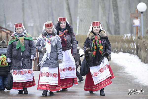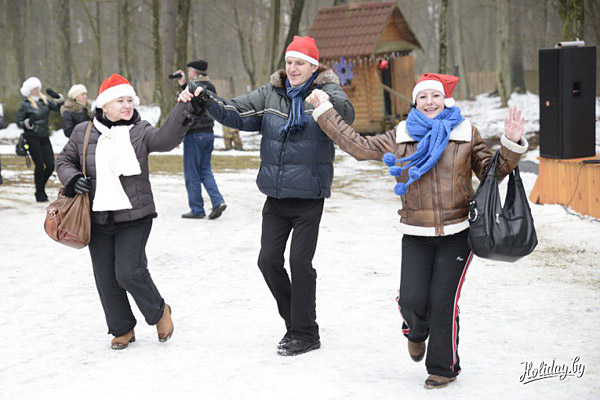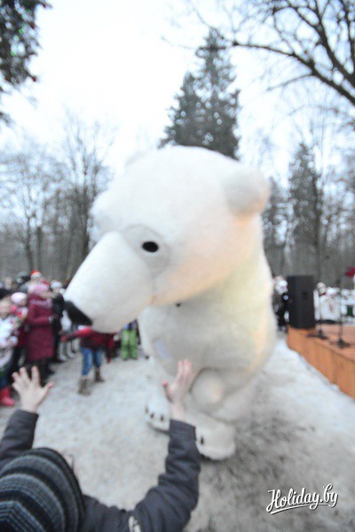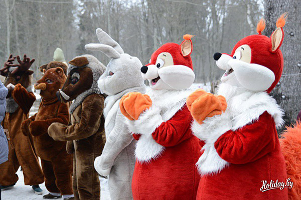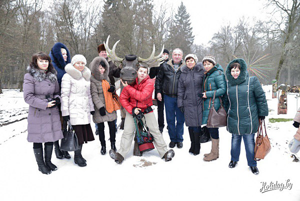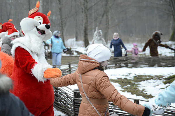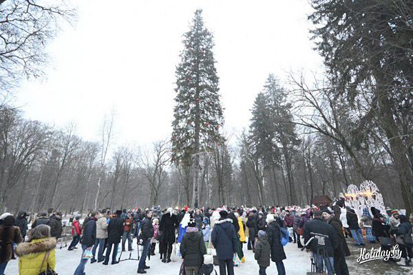 Людей действительно собралось немало. Некоторые приехали целыми семьями на все выходные, другие – с концертными номерами. Каждый метр был заполнен людьми в новогодних костюмах. Здесь прогуливается компания переодетых зайчиков, чуть дальше – кружат белоснежные снежинки. Погостить в поместье белорусского Деда Мороза, увидеть 43-метровую растущую елку и загадать рядом с ней желание приехал и Глинышек из Яранска.