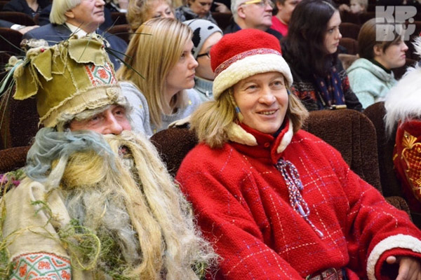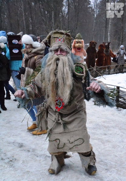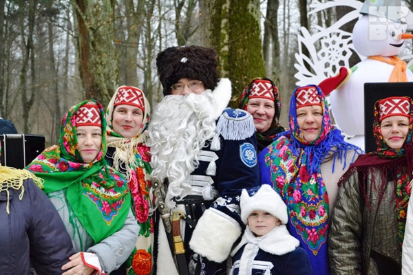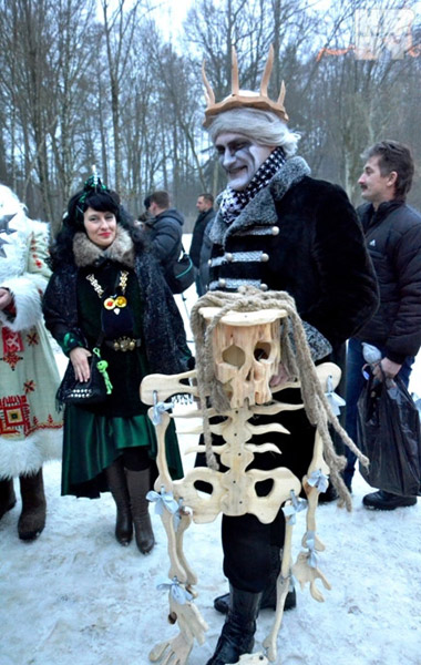 - Я - прадед всех Дедов Морозов. Бог Зимы. Хожу босой. Но это только в своем лесу. И если трещит дом от мороза, то знайте - это я булавой по нему стучу, - говорит одетый в расшитый кожух белобородый Зюзя из Витебской области. - Зюзю на Кутью кормили блюдами с белорусского стола. А так я всех по старому белорусскому обычаю угощаю чаркой, шкваркой и огурцом.