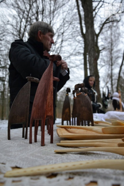Развлекали публику своими поделками ремесленники. В хате Деда Мороза можно было съесть блинов с клюквенным или малиновым вареньем, запить все травяным чаем. Ну, или пущанской самогонкой, как это и сделали гости. Правда, под песни Стаса Михайлова. Да и в разгар праздника многие отстояли в очереди по 40 минут.