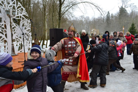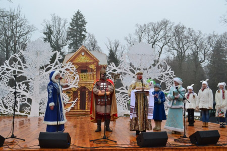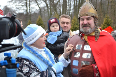 Начались сказочные гуляния 13 декабря, после того, как муромский богатырь поздравил в Беловежской пуще самую высокую елку Европы со 150-летием. В подарок Царь–елке былинный герой преподнес настоящую булаву – символ русской силы, славы и доблести.