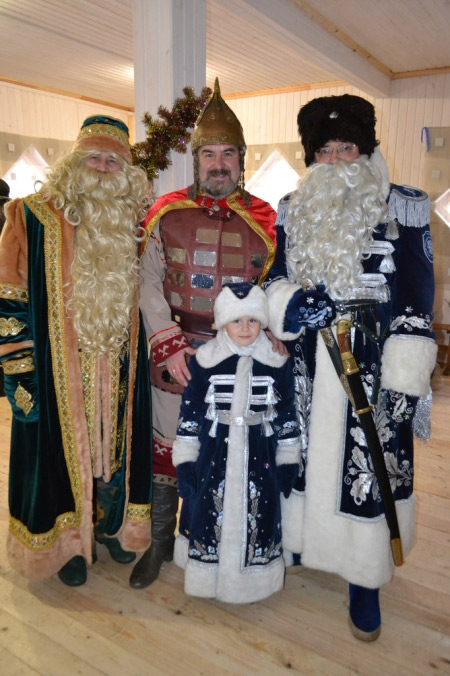 Кстати, на юбилей приехали сказочные герои из разных уголков России и Белоруссии: Всероссийский Дед Мороз из Великого Устюга, Илья Муромец, Царь Берендей из Переславля – Залесского, Всемирный Казачий Дед Мороз из Гатчины, Паккайне – Олонец, Глинышек – Яранск, Кыш Бабай – Татарстан, Зюзя Поозерский – Белоруссия, Болотник из Березенского Заповедника.