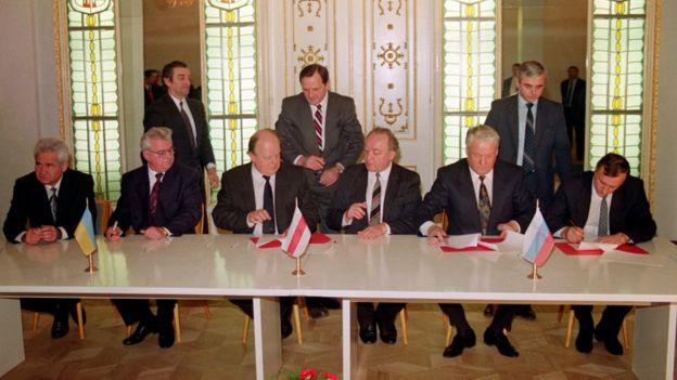 На самом деле, такой повестки дня у встречи глав трех славянских стран (уже фактически стран) не было. Как вспоминал тогдашний глава Белоруссии (председатель республиканского Верховного Совета) Станислав Шушкевич, инициатором встречи был он, приглашал Ельцина для переговоров о каких-то нерыночных условиях поставок нефти и газа (потому что на рыночные денег не было), а Украину добавили, потому что она имела отношение к транспортировке энергоносителей и договариваться за ее спиной было бы неправильно.