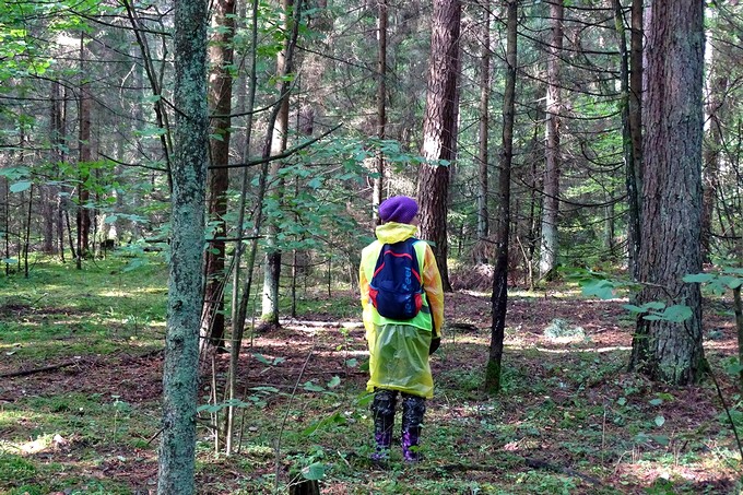 Мы доходим через поле до чистого соснового леса. Ветер продувает его, здесь нет кустов, только мох и высокие сосны. Спрятаться негде. На краю рощи находят куртку детского размера, которую уже успели обжить пауки и наплести там небольших паутин, рядом валяются сношенные туфли. И хотя куртка и ботинки не подходят под описание, часть людей начинает играть в детективов:
