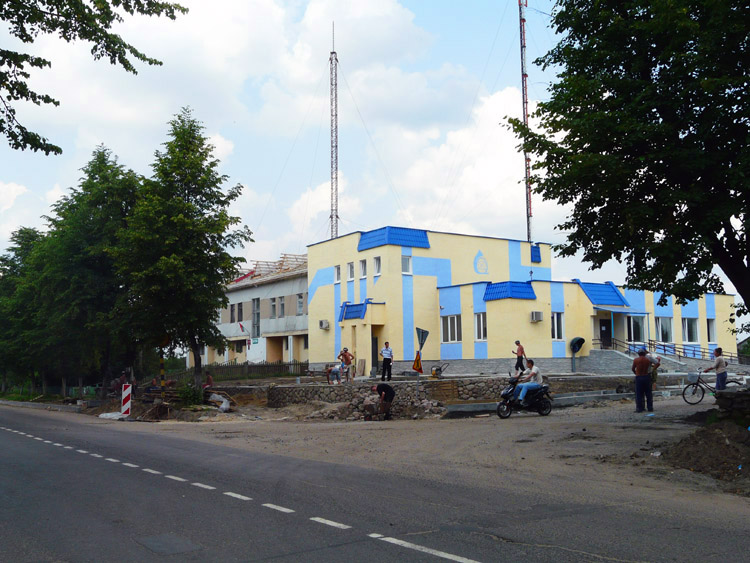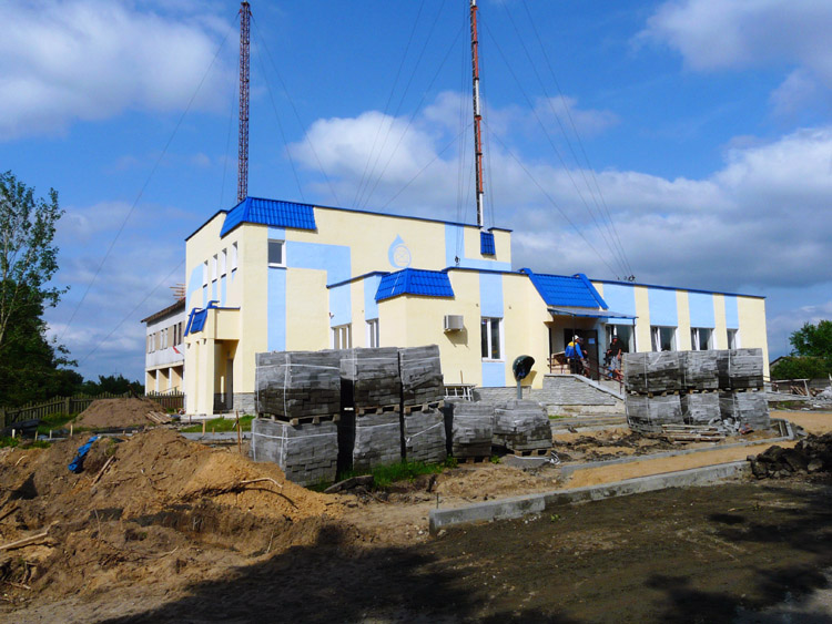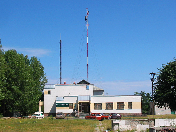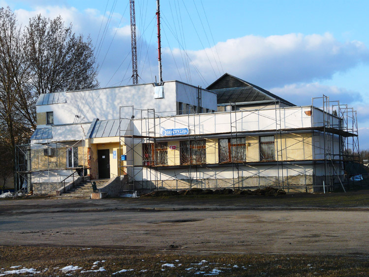 На фотографии ниже: так выглядело здание до ремонта (2006 г., техники монтируют оборудование для мобильной связи).