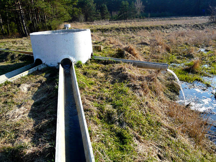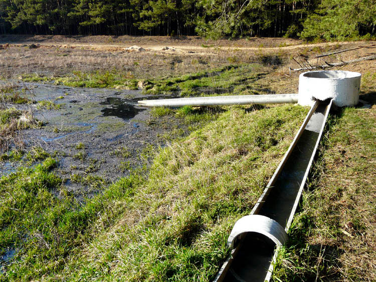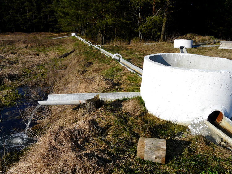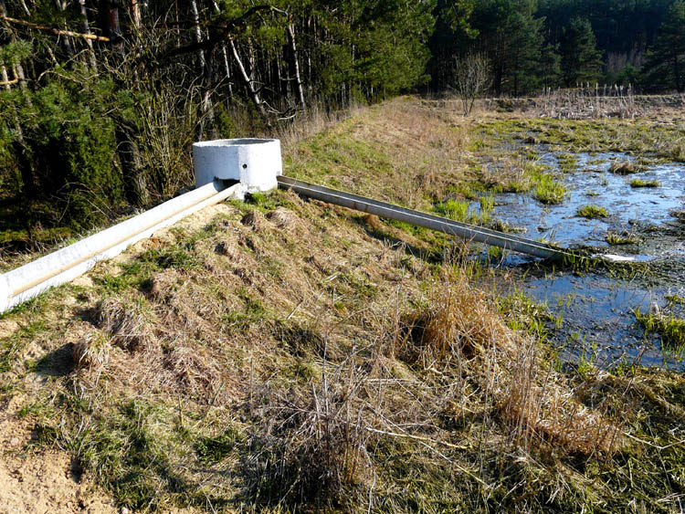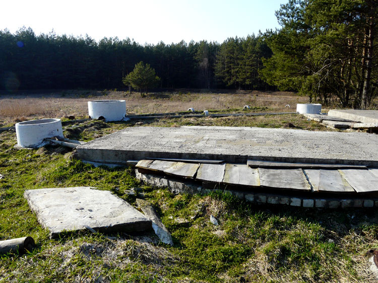 События, факты, документы и свидетельства: На предыдущей странице была показана замена старого водопровода в деревне Каменюки, в которой проживает 1100 человек (на 2009 г.). Сточные воды в конечном итоге попадают в канализационную систему и по трубам подаются в специальное место, на поля фильтрации. Они расположены примерно в 1 километре от поселка среди песчаных холмов и окружены сосновым лесом.