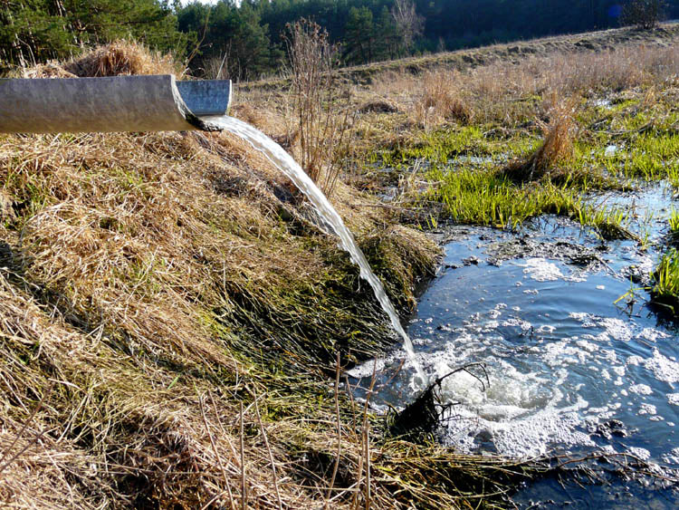 А здесь канализационные воды заканчивают свой длинный путь и выливаются непосредственно на поля фильтрации.