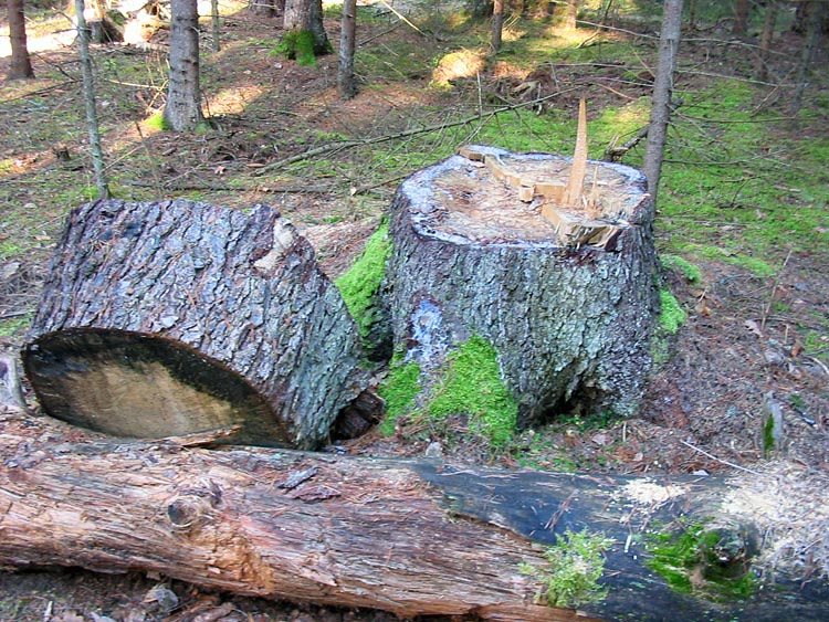 На этих снимках показаны пни, у которых нет смоловыделения. Это означает, что на момент рубки данные ели уже погибли и их вырубка не противоречит природоохранному законодательству.