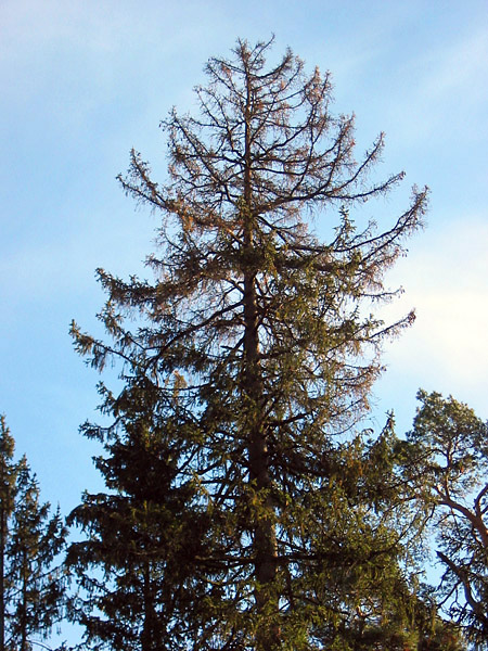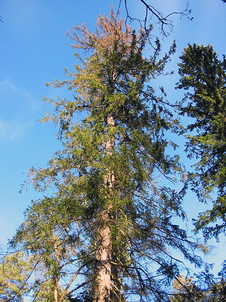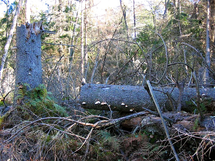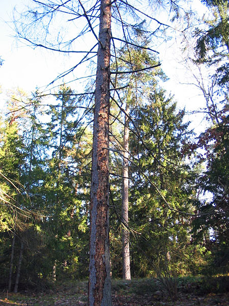 | (Первая пораженная короедом ель более детально; квартал 843, 4 ноября 2007 г.) | |||