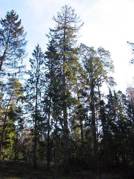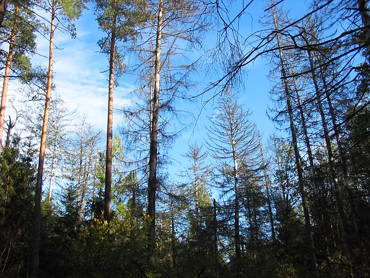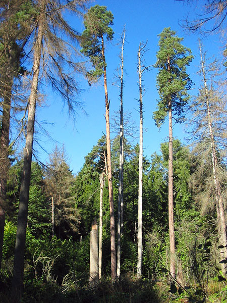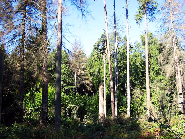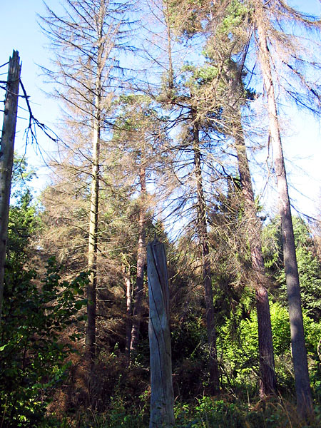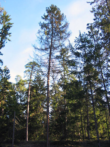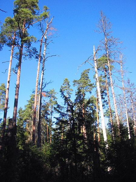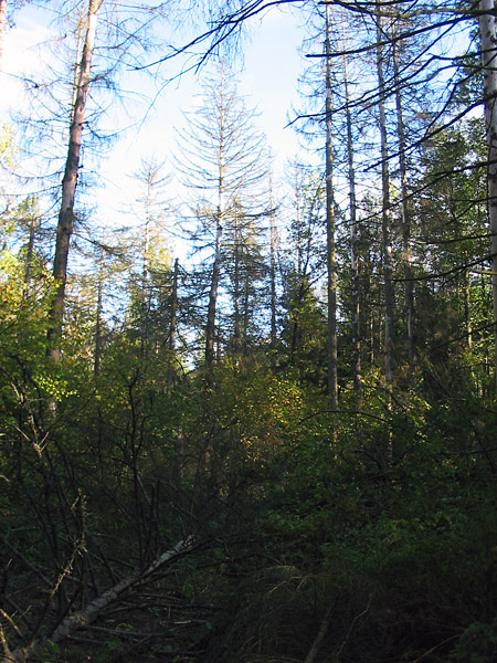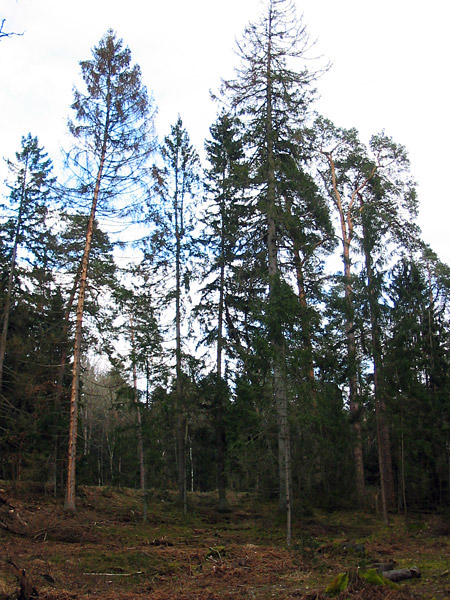 | (Пораженные короедом ели; квартал 843, 4 ноября 2007 г.) | |