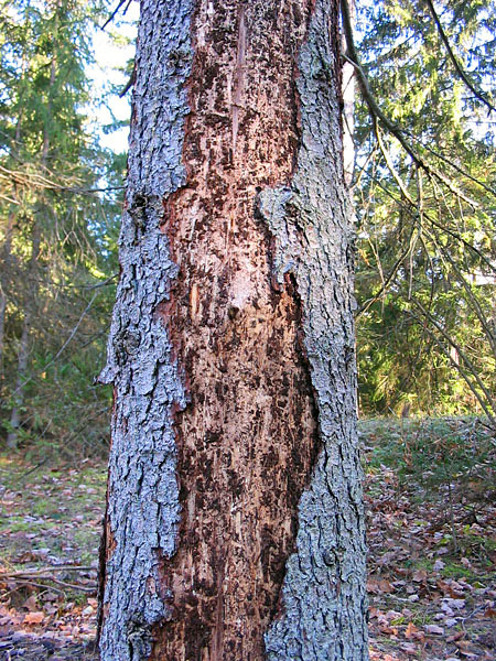 | (Вторая пораженная короедом ель более детально; квартал 843, 4 ноября 2007 г.) | |||