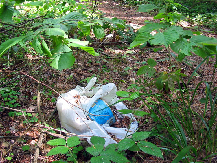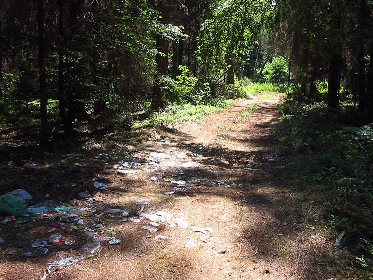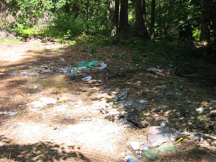 События, факты, документы и свидетельства: Как уже было показано на страницах "Демонстрация антиэкологической политики национального парка приезжающим туристам, 2004 г." и "Загрязнение Беловежской пущи бытовым мусором вокруг туристического центра (2005)", в национальном парке неудовлетворительно ведется работа по поддержанию чистоты в Беловежской пуще, в том числе в лесу вокруг туристического центра в деревне Каменюки. Окружающий лес полон мусора и местами напоминает нечто подобное на свалку.
