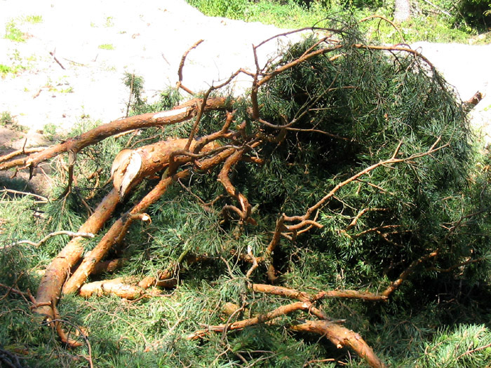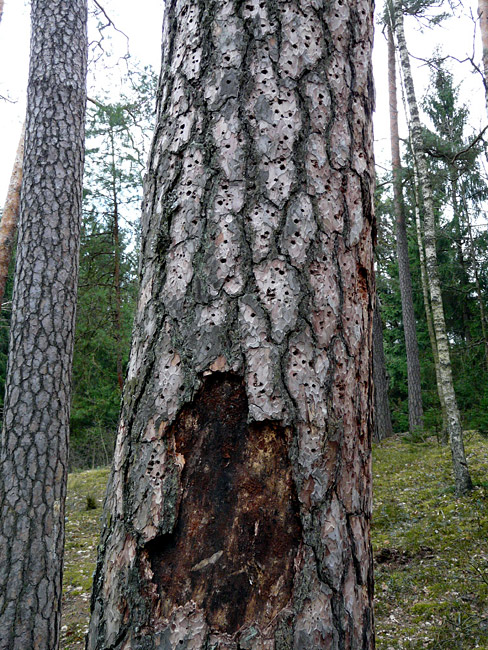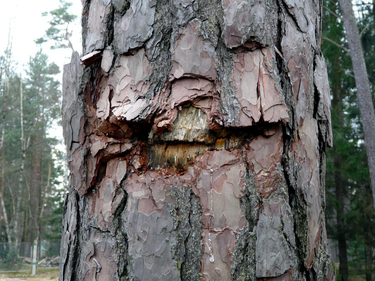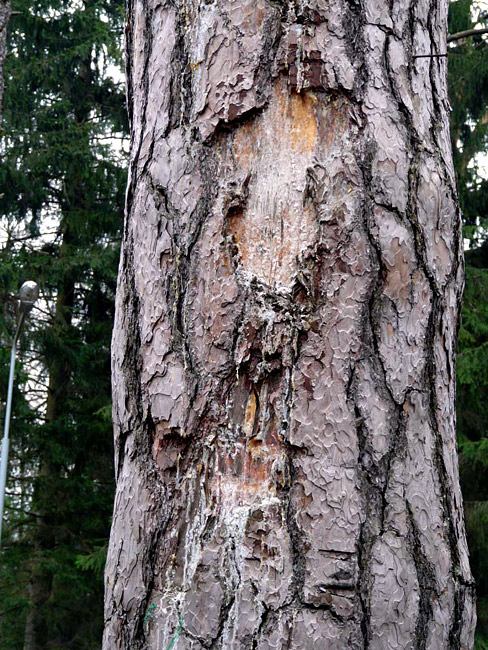 | (Поврежденные стволы старовозрастных сосен; 8 марта 2008 г.) |