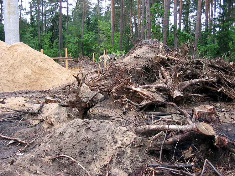 Для создания полей фильтрации в некоторых местах был вырублен молодой лес и кустарник.