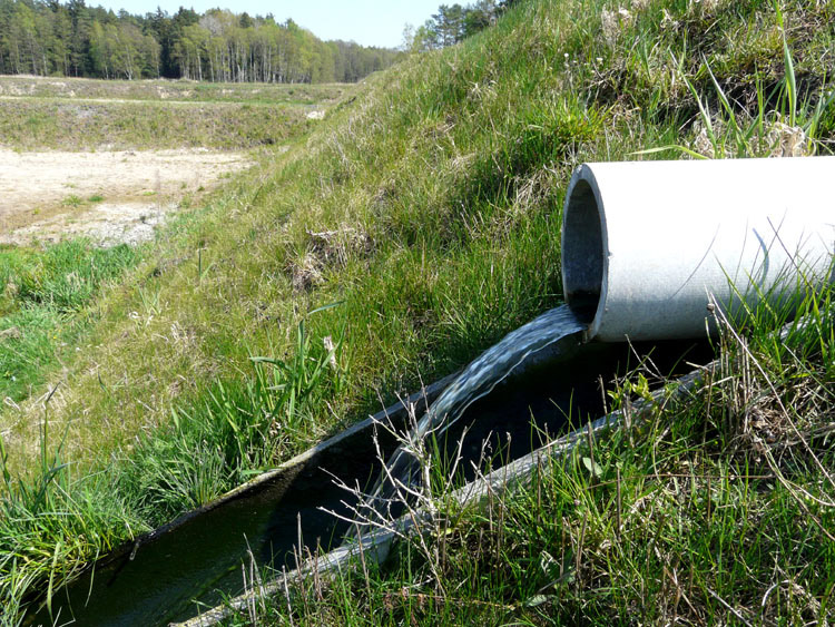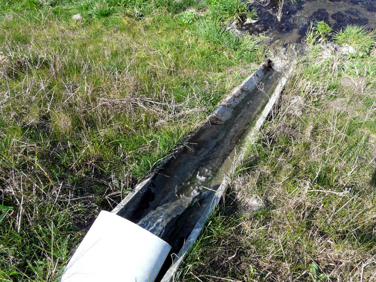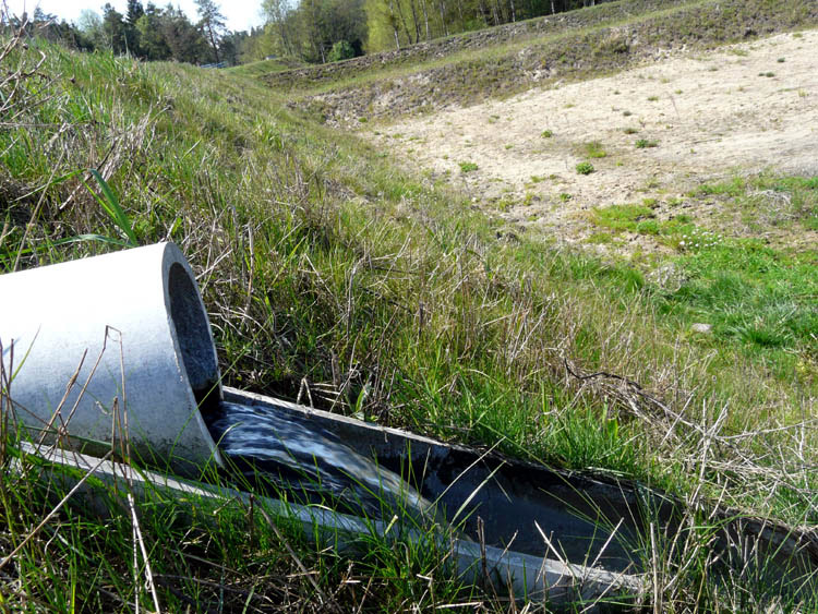 | (Вода, просачивающаяся сквозь боковую дамбу с полей фильтрации наружу; 3 мая 2009 г.) |