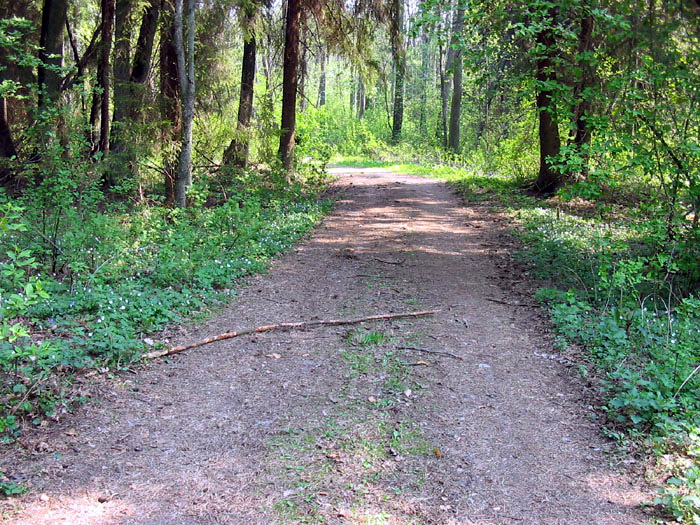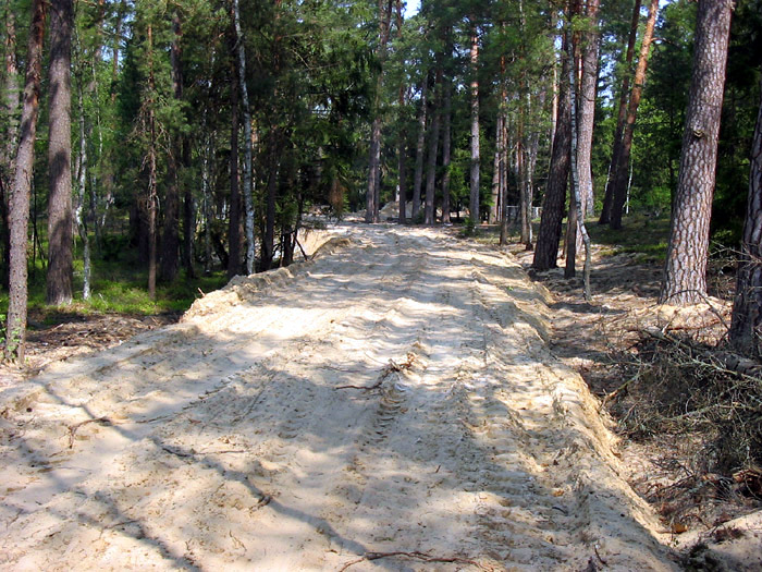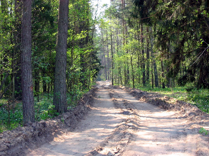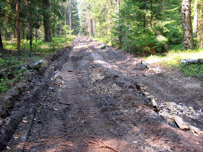 | (Дорога в урочище Докудово, перекрытая сооружениями; 7 мая 2006 г.) |