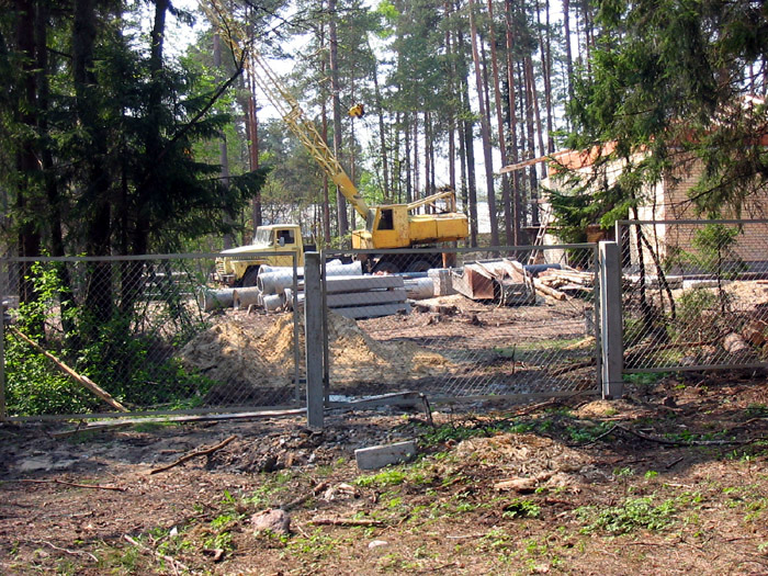 Строительство началось с вырубки и расчистки участка живого, элитного, старовозрастного, соснового, реликтового леса под новые гидротехнические сооружения. Участок располагался непосредственно за складами ресторана.